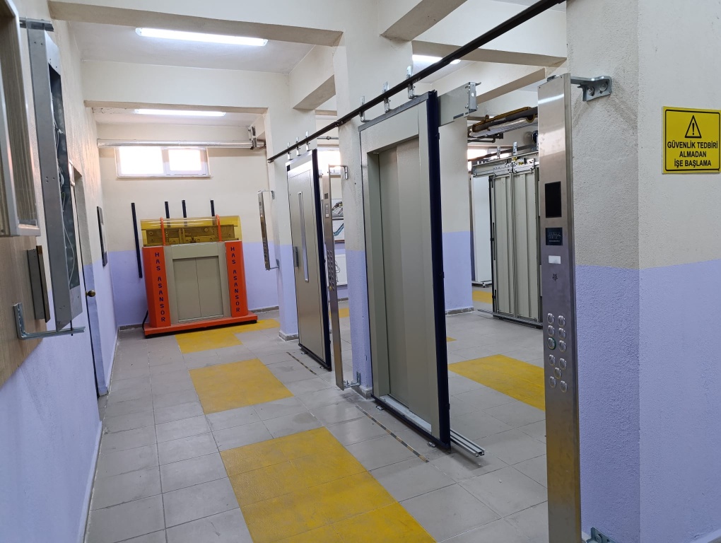 OKULUMUZ 2008 YILINDA EĞİTİM VE ÖĞRETİME BAŞLAMIŞTIR. Asansörler, belirli seviyelerde hizmet veren , esnek olmayan ve yatay düzlemle 15º den fazla bir açı oluşturan raylar boyunca hareket eden bir kabine sahip olan ve insanların ve yüklerin taşınmasına yarayan elektro-mekanik bir sistemdir. Asansörler 100 yıldan daha uzun bir zaman diliminde insanlara yüksek katlı binalarda hizmet vermektedir. Asansörlerin yanı sıra yürüyen merdivenler konusunda eğitim verilmektedir. Asansörlerle görevi yerine getirmesine rağmen yürüyen merdivenler daha basit bir mekanizmaya sahiptir. Yürüyen merdivenler sürekli çalışan sistemi ile yolcuların katlar arasında taşınmasını sağlar. Yürüyen merdivenler zincir mekanizmasına bağlı hareketli basamaklarla yolcuları taşıdığı gibi ikinci bir dişli sistemi ile el bandını senkron olarak hareket ettirir. .